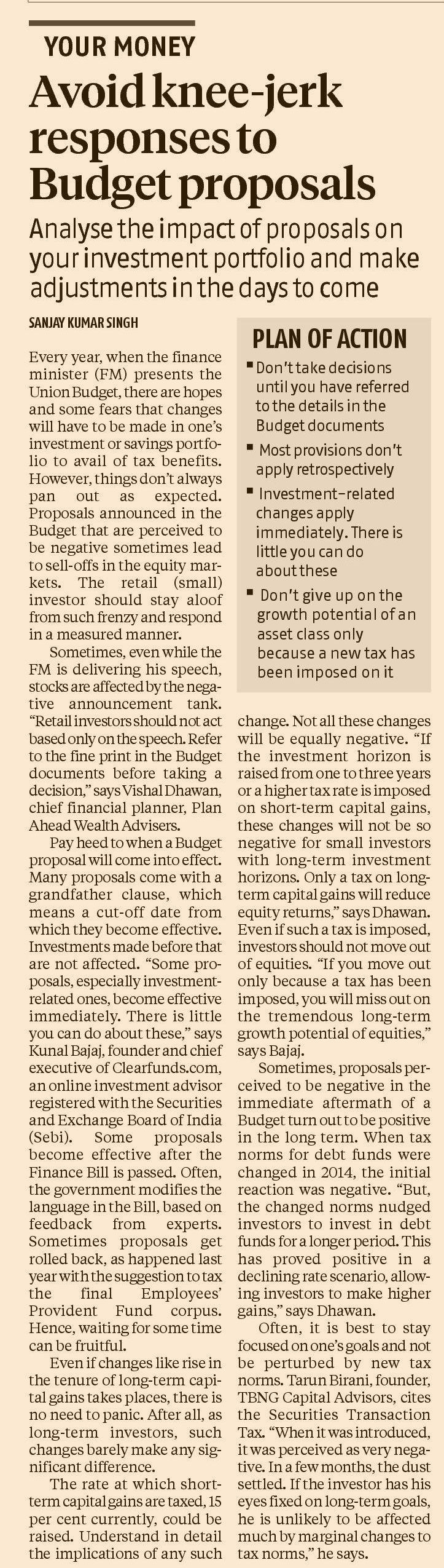 Personal Finance - Avoid Knee-jerk Responses To Budget Proposals