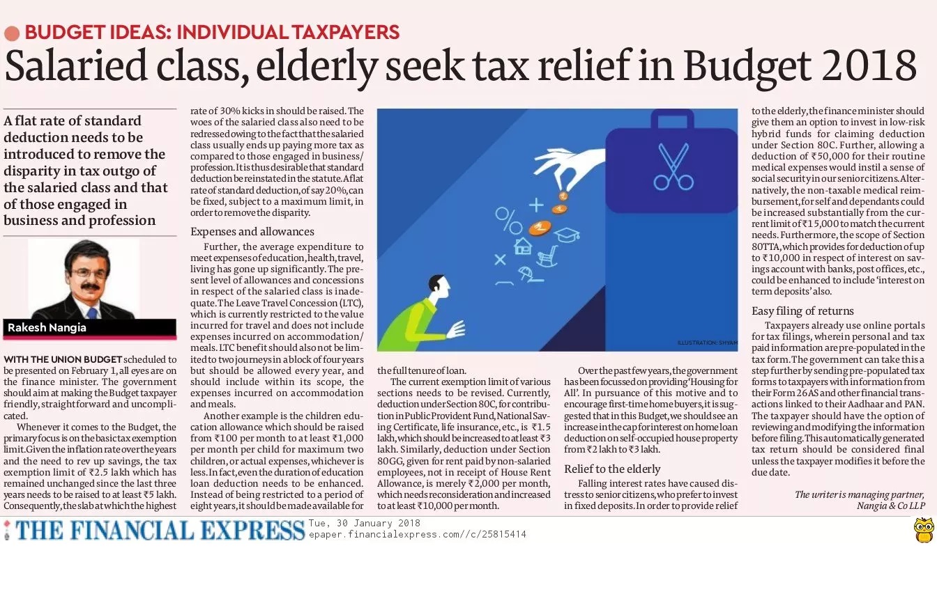 Personal Finance - Salaried Class, Elderly Seek Tax Relief In Budget 2018