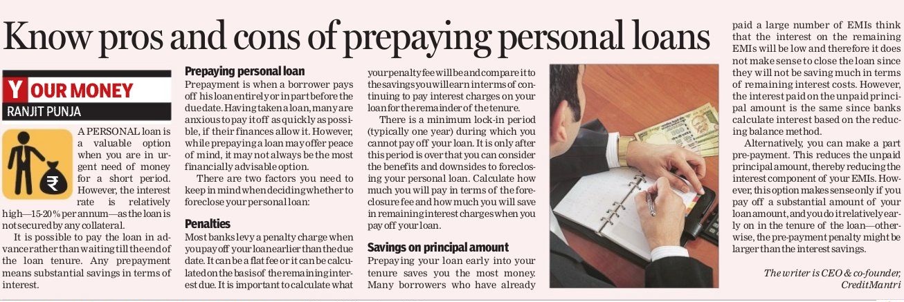 Personal Finance - Know Pros & Cons Of Prepaying Personal Loans
